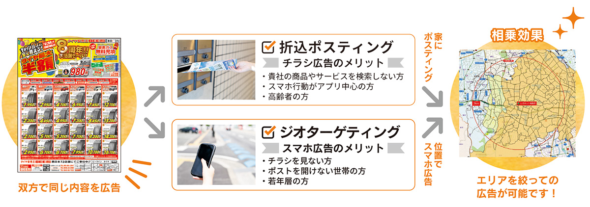 - リアル(チラシ)とネット(位置情報広告)の双方で効率化
